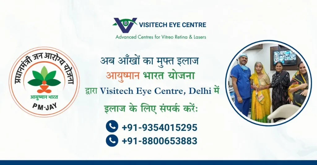 If you have an Ayushman Bharat Card and are looking for free cataract or eye surgery in Delhi, Visitech Eye Centre in South Delhi is your trusted partner. With advanced facilities, skilled surgeons, and government-approved cashless care, your vision is in safe hands.